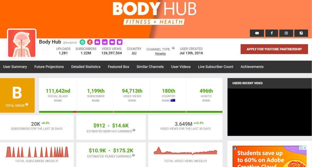 Vâng! Đây là kênh Youtube có tên Body Hub một kênh chuyên về chủ đề sức khỏe..Hiện nay đang có 1.22 triệu người đăng ký trên toàn thế giới. Chỉ với 1.2 nghìn VIDEO được tạo ra chủ kênh đã tạo ra một sự nghiệp bền vững, vững chắc trên Internet… VÀ BẠN CŨNG CÓ THỂ LÀM VẬY..