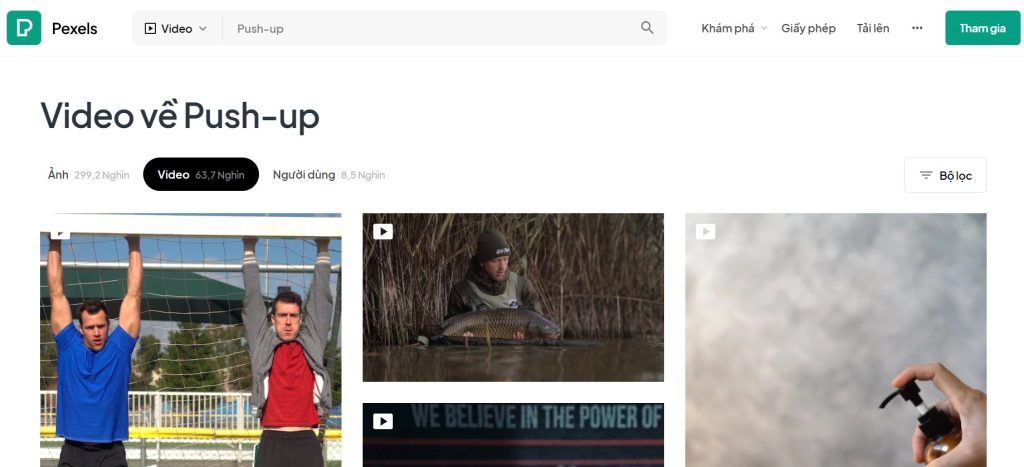 Với chủ đề và nội dung Video là chủ đề Chống đẩy. Mình nhập KEY “Push-up” lên thanh tìm kiếm như vậy đã ra 299 nghìn tấm ảnh, 67 nghìn VIDEO với 8.5 nghìn tác giả… QUẢ THẬT TUYỆT VỜI ĐÚNG KHÔNG CÁC BẠN VÀ NÓ HOÀN TOÀN MIỄN PHÍ NHÉ!