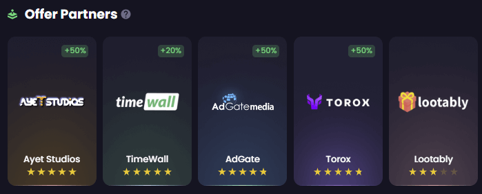 Thỉnh thoảng, họ cũng có các chương trình khuyến mãi, ví dụ, bạn có thể nhận được một khoản thưởng 50% trên tất cả các ưu đãi mà bạn thực hiện trên một offerwall nhất định trong một khoảng thời gian giới hạn. Đây chắc chắn là điều đáng chú ý, vì nó có thể thực sự tăng cường thu nhập của bạn.