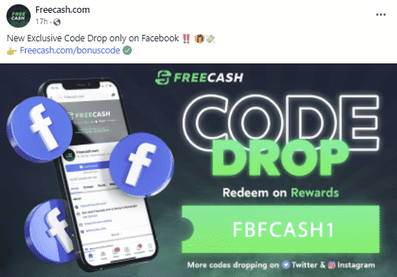 Freecash công bố các mã khác nhau trên Facebook, Twitter và Instagram, vì vậy việc theo dõi cả ba kênh này có thể rất hữu ích để có cơ hội nhận điểm miễn phí.