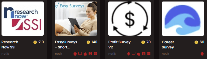 Như bạn có thể thấy trong hình ảnh trên, bạn sẽ dễ dàng nhận biết được số điểm bạn sẽ nhận được cho mỗi khảo sát và các thiết bị mà bạn có thể thực hiện khảo sát đó, điều này làm cho trải nghiệm người dùng trở nên rất thân thiện.