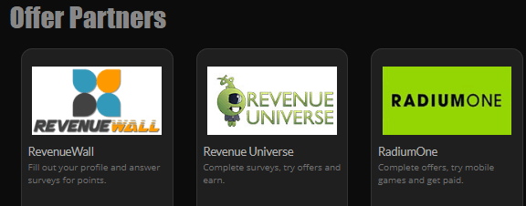 Rewards1 có khá nhiều tường quảng cáo và đối tác. Mặc dù không nhiều bằng một trang như ySense, nhưng Rewards1 cung cấp một lượng khá tốt và nhiều cách để kiếm tiền ở đây.