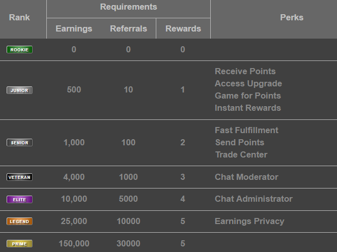 Hiện tại tôi đã đạt được cấp độ hội viên cao nhất (Prime), và một trong những lợi ích tôi yêu thích nhất ở cấp độ này là ngưỡng thanh toán thấp nhất có thể. Vì vậy, đối với một số phần thưởng, giờ đây tôi chỉ cần kiếm $0.50 để có thể rút tiền – nhưng sẽ có thêm thông tin về các tùy chọn thanh toán bên dưới.