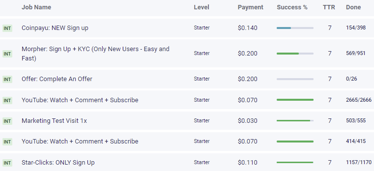Như bạn có thể thấy trong hình ảnh trên, bạn cũng sẽ thấy ở phía bên trái của màn hình, quốc gia mà nhiệm vụ áp dụng. Nếu ghi “INT”, nghĩa là nhiệm vụ đó áp dụng cho quốc tế và bạn có thể thực hiện công việc bất kể bạn sống ở đâu – và may mắn thay, có nhiều công việc có sẵn cho tất cả các quốc gia.