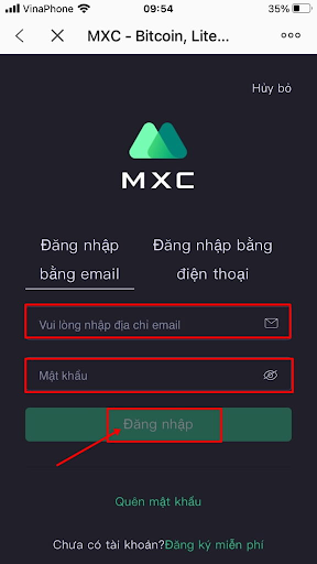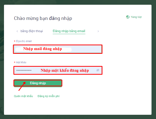 Nhập email và mật khẩu đăng nhập và chọn “Đăng nhập”