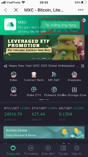 Chọn app MXC trên “App store” nếu bạn sử dụng iphone hệ điều hành IOS, hoặc “Local Download” hệ điều hành Android về điện thoại của mình