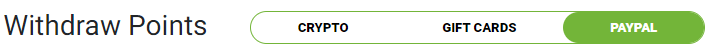 Có ba loại phần thưởng mà bạn có thể chọn. Bạn có thể chuyển đổi điểm của mình thành tiền mặt qua PayPal, thẻ quà tặng khác nhau hoặc tiền điện tử.