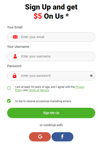 Bạn cũng có thể sử dụng tài khoản Google hoặc Facebook của mình để đăng ký. Bạn phải ít nhất 18 tuổi để đủ điều kiện đăng ký.