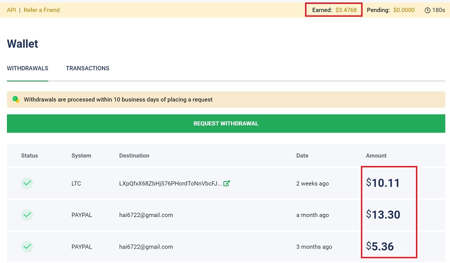 Chỉ cần bạn kiếm được $5 là có thể rút tiền về rồi. Hiện tại Picoworkers có hai phương thức thanh toán qua ví điện tử thông qua Paypal, Skrill hay tiền điện tử.
