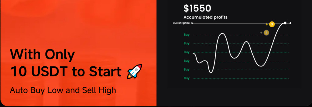 - Dành cho thị trường đi ngang. Bạn thiết lập giới hạn trên/dưới, số “lưới” (grid), và số vốn. Bot sẽ tự động mua ở grid thấp – bán ở grid cao.