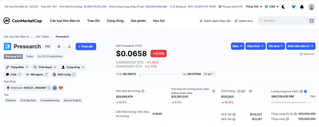 Trước khi tìm hiểu về cách kiếm tiền với Presearch, chúng ta cùng nhau tìm hiểu đôi nét về đồng tiền điện tử Presearch ( PRE). Để có cái nhìn tổng thể hơn về token này nhé.