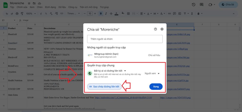 Sau khi hoàn thành đầy đủ theo biểu mẫu bạn bắt đầu xuất bạn tạo WEBSITE kéo thả ( Bạn yên tâm sau khi có WESITE bạn vẫn có thể chỉnh sửa File Sheet nhanh tróng để bổ sung sản phẩm NEW… Đó là lợi thế khi sử dụng SpreadSimple)